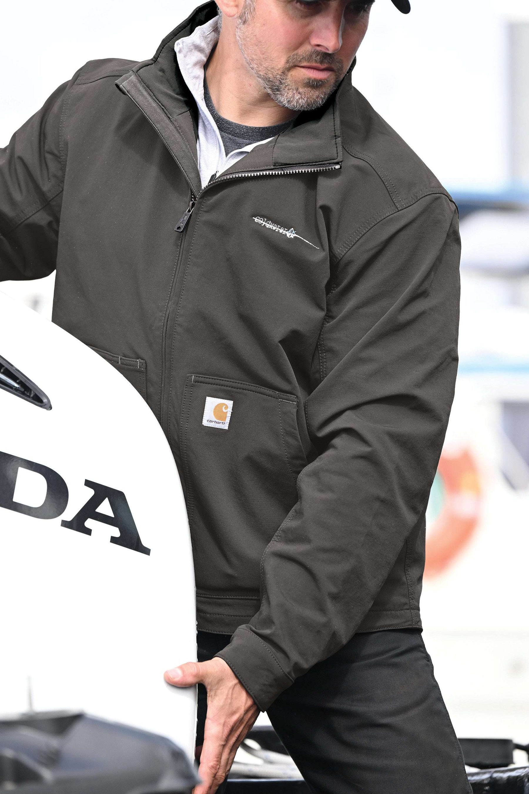 This soft shell jacket combines iconic Carhartt looks with unbeatable weather protection. The nylon is 35% lighter than traditional duck but with twice the abrasion resistance.