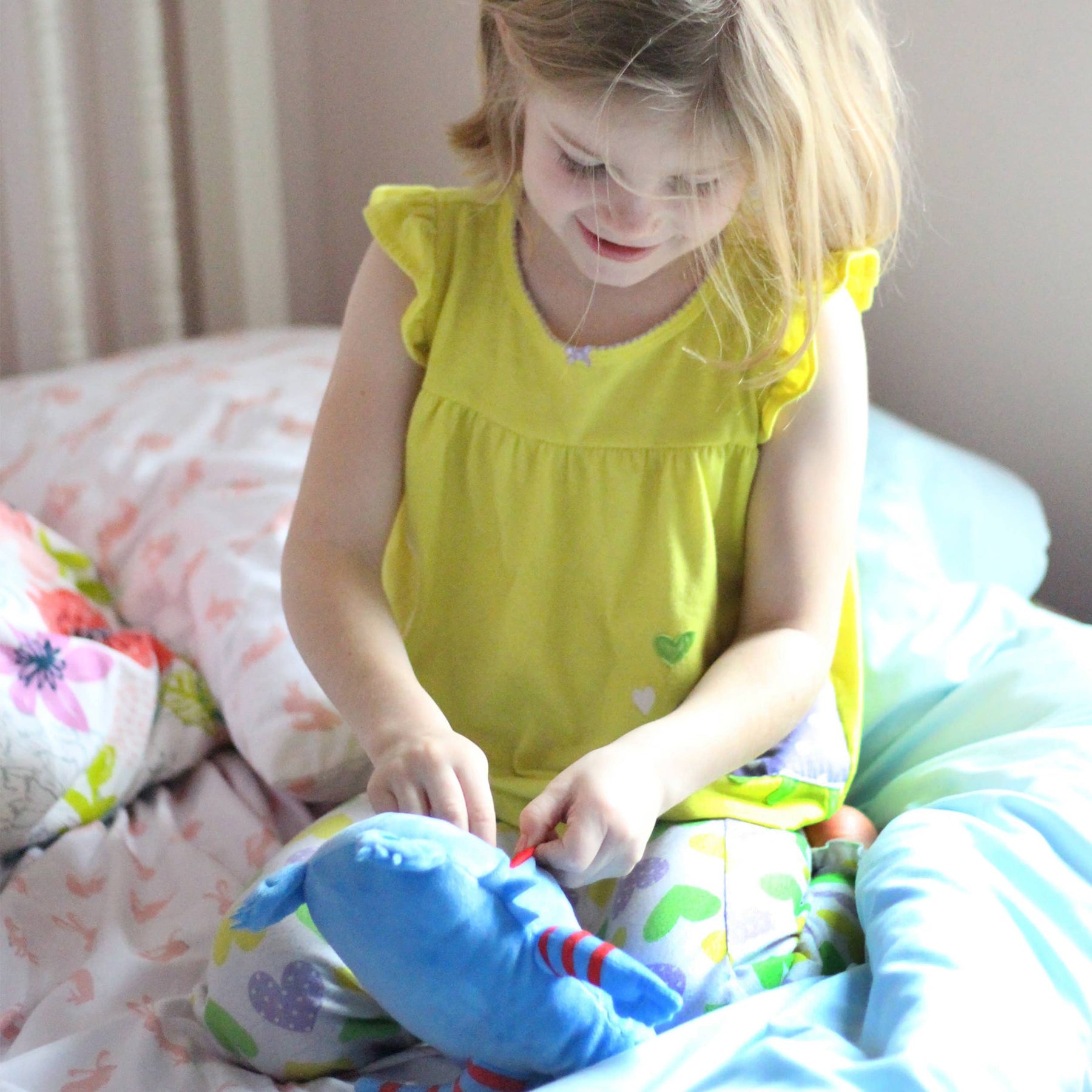 Blue is so soft and huggable! 8" tooth pillow with a deep mouth perfect for holding lost teeth + Tooth Fairy prizes! Ears, tail, arms and legs are easy to find and grab in the dark. Plus there's a "substi-TOOTH" for times when a tooth falls out and then goes missing.