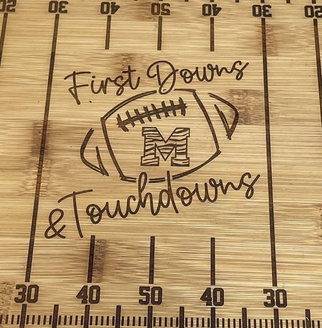 We recommend using the backside for cutting and the front side with the decorative elements for serving. It can also be used as a great way to show your team spirit as a display for your wall or counter.PRODUCT SPECIFICATIONS: