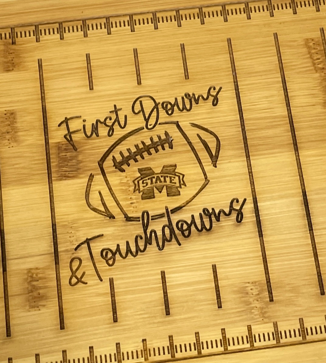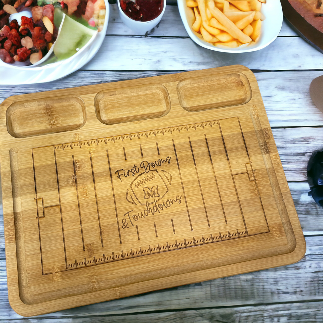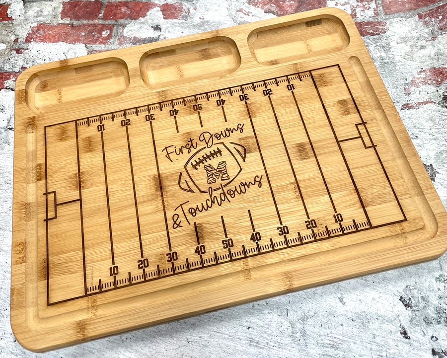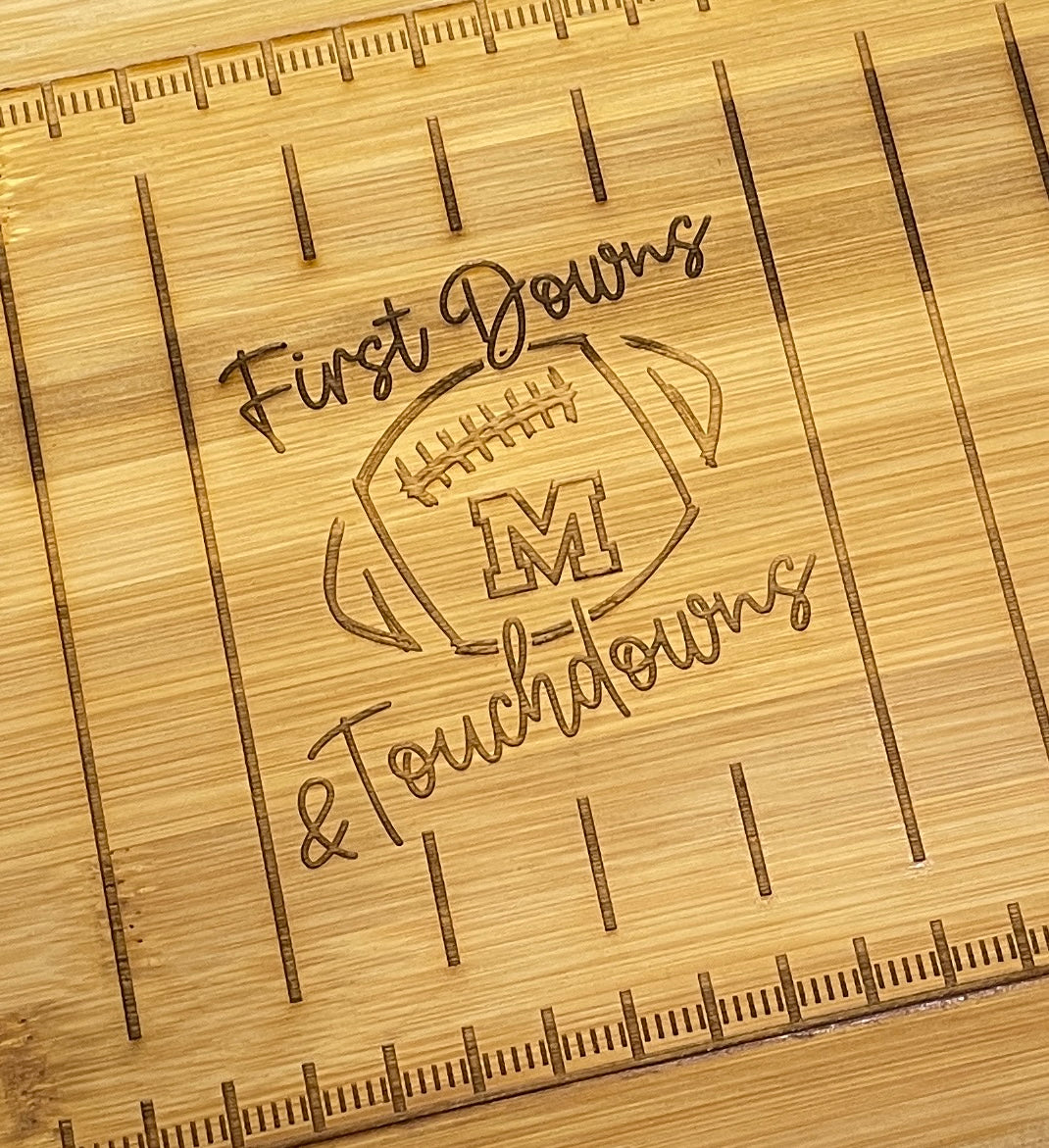 This Football Charcuterie Board is the perfect way to show off your team spirit and score big for your game day party! Crafted from bamboo, it measures 17.5 x 13.5 inches and is sure to be a touchdown in your catering lineup! Add a little savory spice to your gridiron snack-line up with this one-of-a-kind charcuterie board - it'll be a real goal-getter!