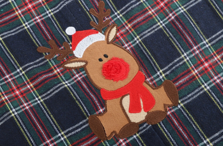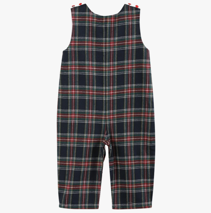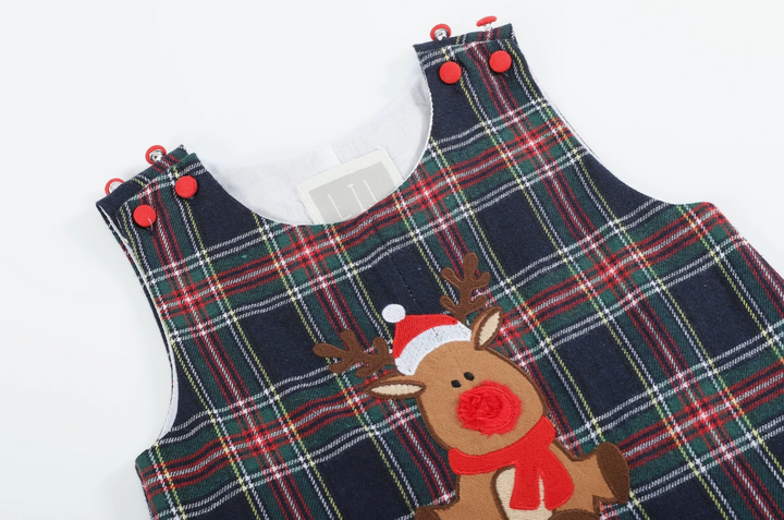 Festive and Fun! These Lil Cactus overalls are made in a beautiful navy and red plaid 100% cotton. They feature an adorable applique reindeer and snap enclosure for easy changing. The perfect outfit for your little guy and all of your winter fun. From pictures with Santa to holiday meals at home; no matter the occasion he will be looking picture-perfect!