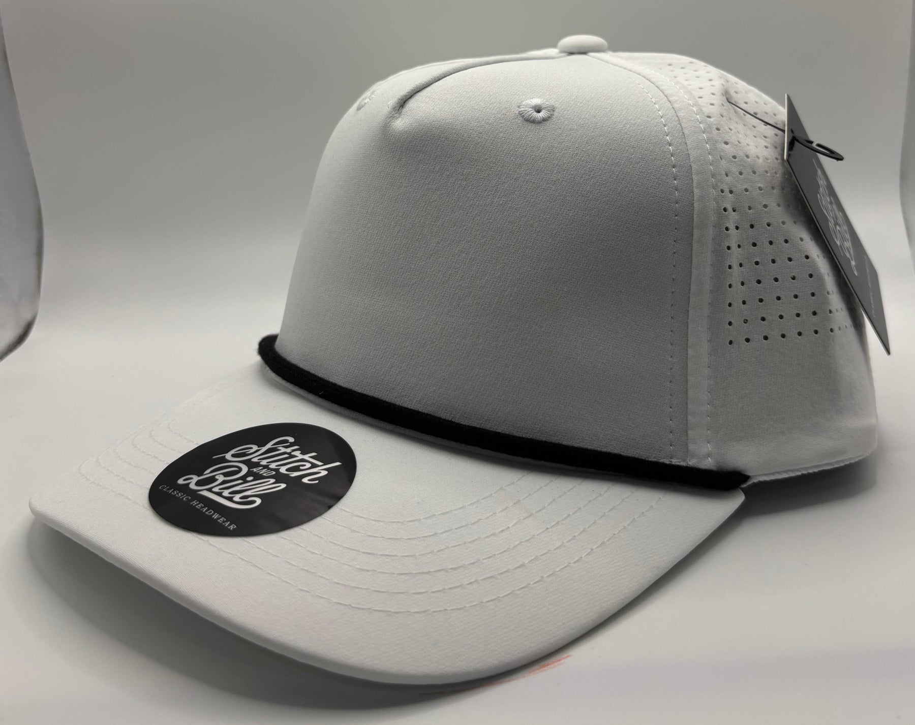 Performance Air Flow 5 Panel Rope Baseball Cap — Modern Function Meets Everyday Style The Stitch and Bill Performance Air Flow 5 Panel Rope Baseball Cap delivers the perfect mix of performance and design. Crafted with lightweight, breathable performance fabric and finished with a premium rope detail across the brim, this cap offers a clean, athletic look your customers will love.