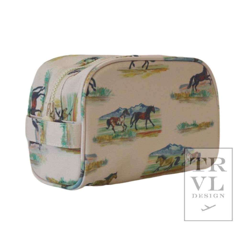 Simplify your packing routine and stay tidy with our smaller dopp kit Stow It. This soft sided bag with a carry handle is a mid size toiletry bag for toiletries, make-up, hair care – anything to have within arm’s reach while getting ready for your day. Comes with a slip interior pocket and is wipeable and machine washable.